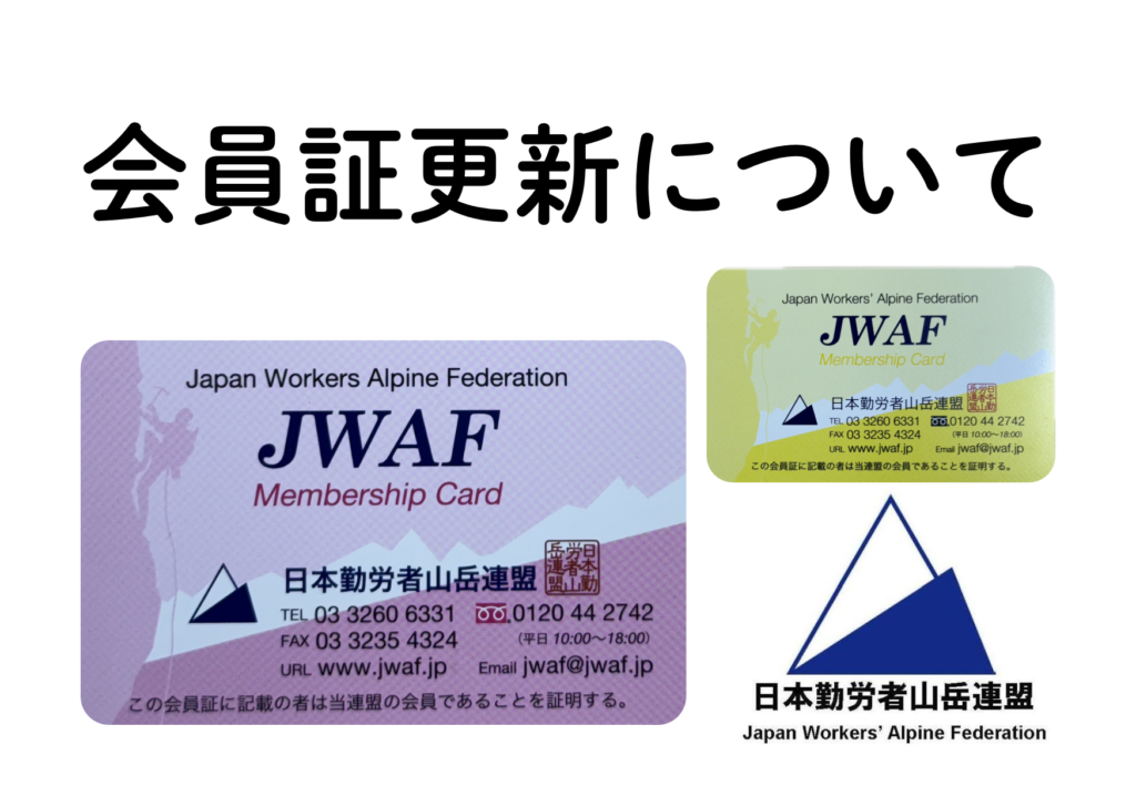 すでに皆様のお手元には新しい会員証(ピンク)が届いているかと思いますが、届いていない会・グループは全国労山事務局にメールにてお問い合わせください。